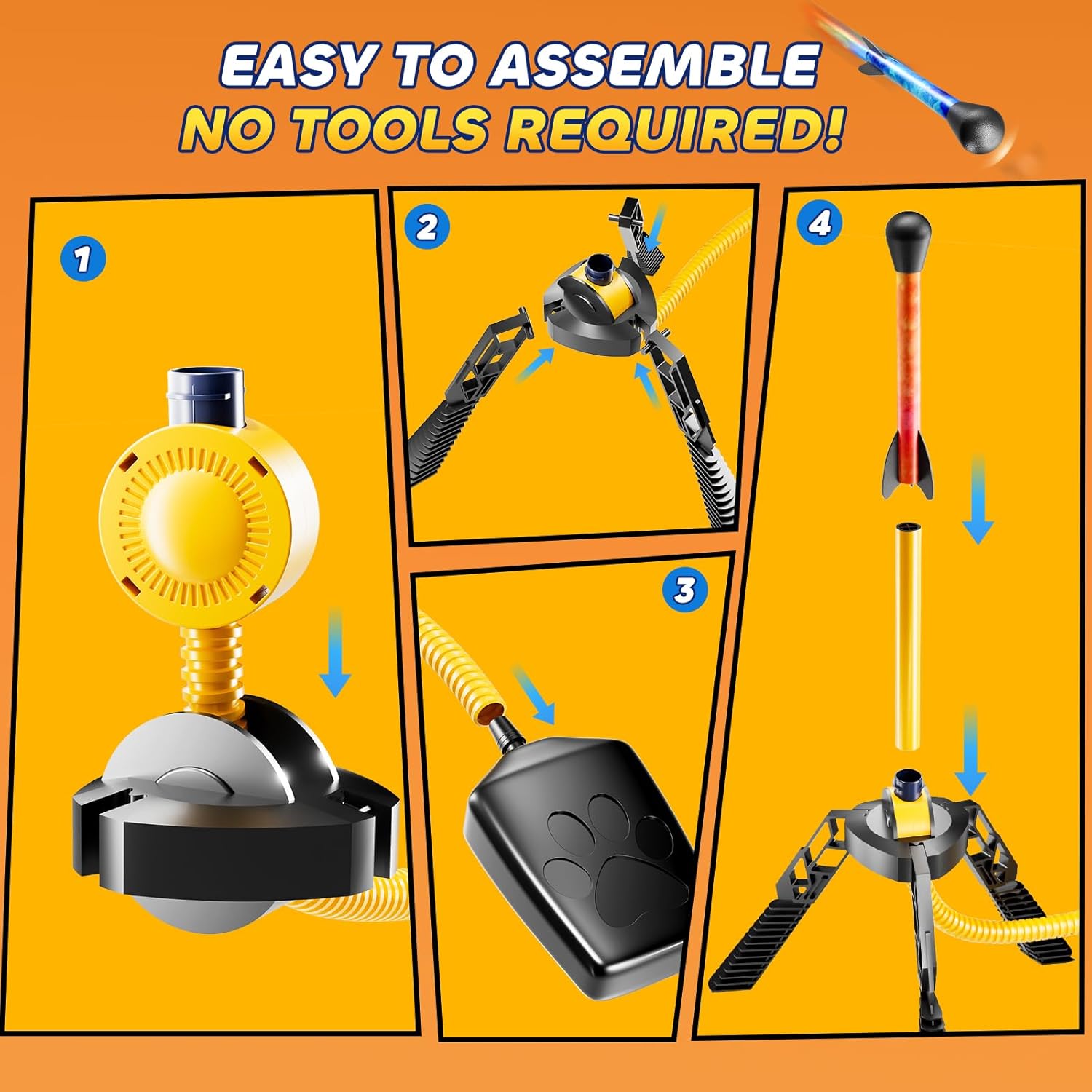 - Launch Up to 100+ Feet– Powered by afoot pump and kids’ jumping force, sending rockets high into the sky. No batteries required for launching.